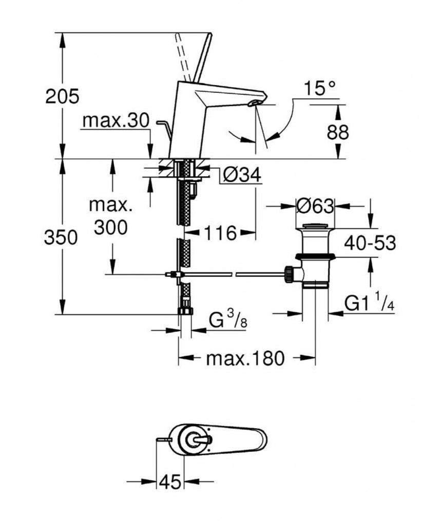 Páková umyvadlová baterie DN 15