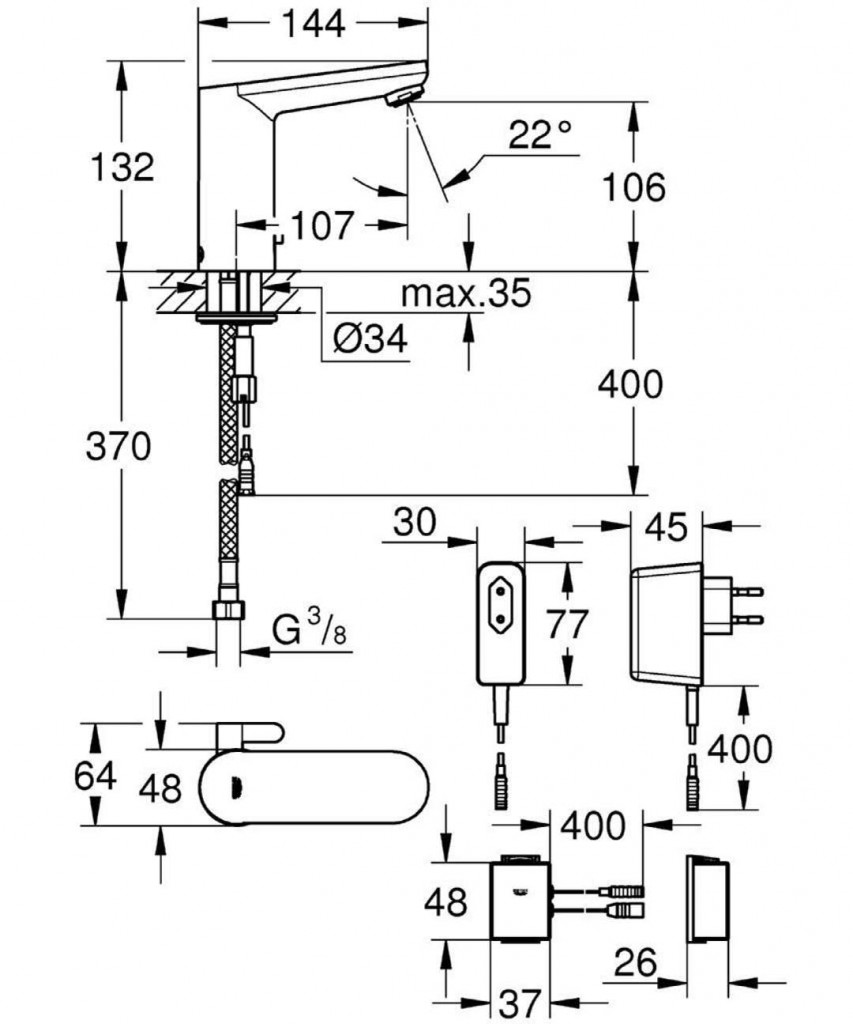 - mobilní zařízení a GROHE IR Remote App*** nejsou součástí dodávky a je nutno objednat sepárátně prostřednictvím autorizovaného Apple store/obchodu/iTunes nebo obchodu Google Play