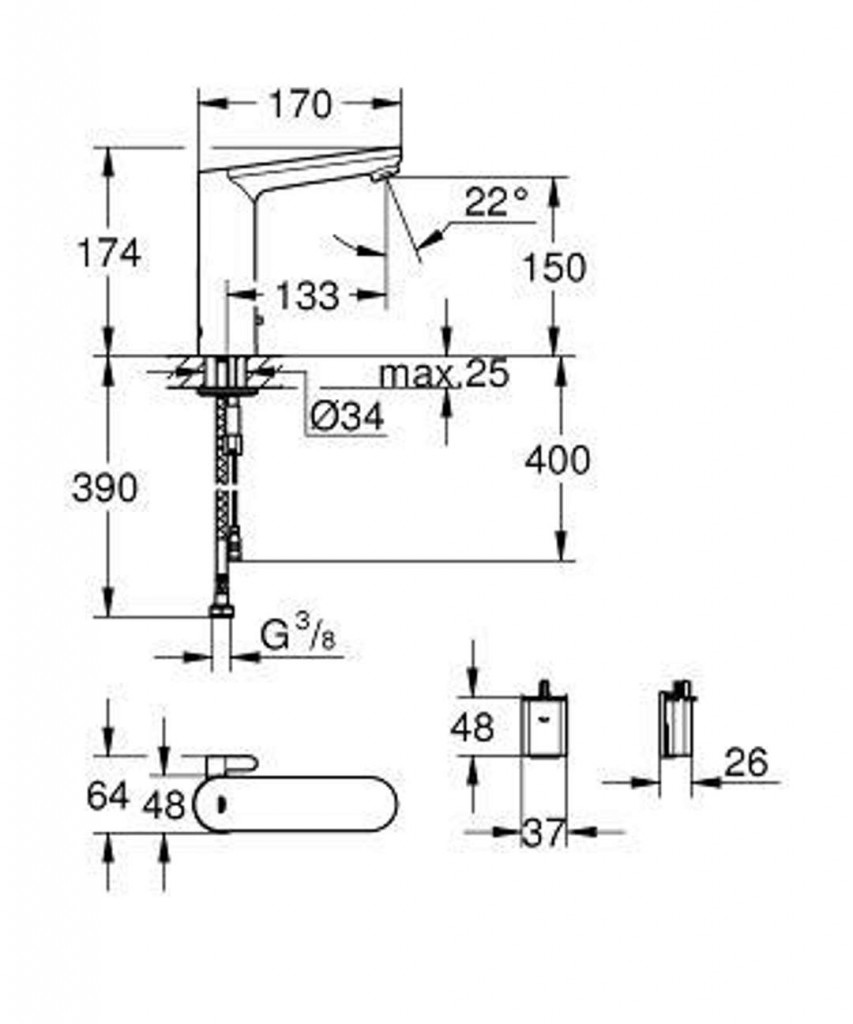 Umyvadlová baterie s infračerveným sensorem, DN 15, velikost L