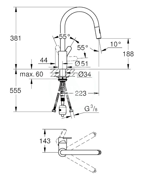 - GROHE Zero vedení vody uvnitř - bez niklu a olova