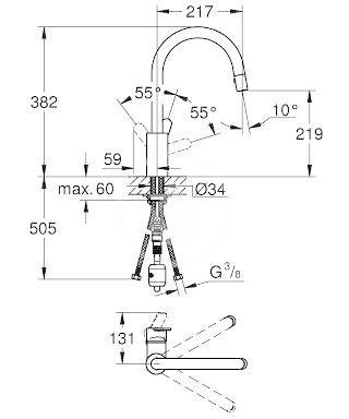 - přepínání: perlátor/SpeedClean sprchový proud
