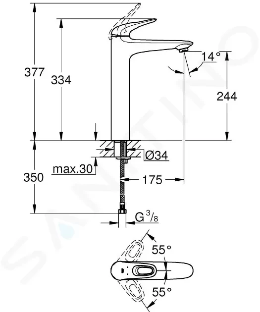 Páková umyvadlová baterie, velikost XL