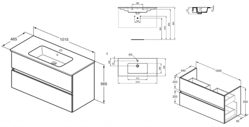 - rozměr umyvadla: 175 x 1015 x 465 mm (VxŠxH)