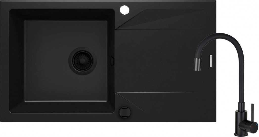 Granitový dřez Deante série EVORA s pákovou dřezovou baterií je vyroben z nejkvalitnějšího přírodního granitového kompozitu. Vyznačuje se odolností proti nárazu, vysoké teplotě a náhlým změnám, v souladu s evropskou normou PN-EN 13310. Moderní povrch nebledne a neztrácí lesk. Dokonale se hodí k dřevěným a kamenným deskám. Praktický 1-miskový dřez s odkapávačem je perfektním řešením v malých kuchyních a studiových bytech s kuchyňským koutem. Funguje i jako odkládací plocha: profilovaný povrch účinně odvádí vodu stékající z nádobí nebo umytého jídla.