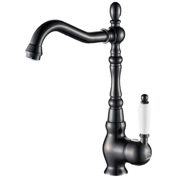 Keramická kartuš zaručuje plynulé ovládání průtoku i teploty vody. Výrazným estetickým prvkem je kontrastní bílá rukojeť, která podtrhuje retro vzhled baterie.