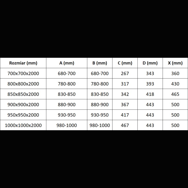 Specifikace produktu: Rozměr: 85x85 cm Výška: 200 cm Montáž: Univerzální Vstup: Posuvné dveře Barva skla: Průhledná Povrchová úprava: Zlatá Typ skla: Tvrzené Tloušťka skla: 6 mm Profil: Hliník Povlak pro snadné čištění Vyrovnání nerovností stěny Nastavení šířky Možnost montáže na sprchovou vaničku nebo obklady Kovová rukojeť Sada těsnění pro odvod vody Hliníkový práh těsnění dveří