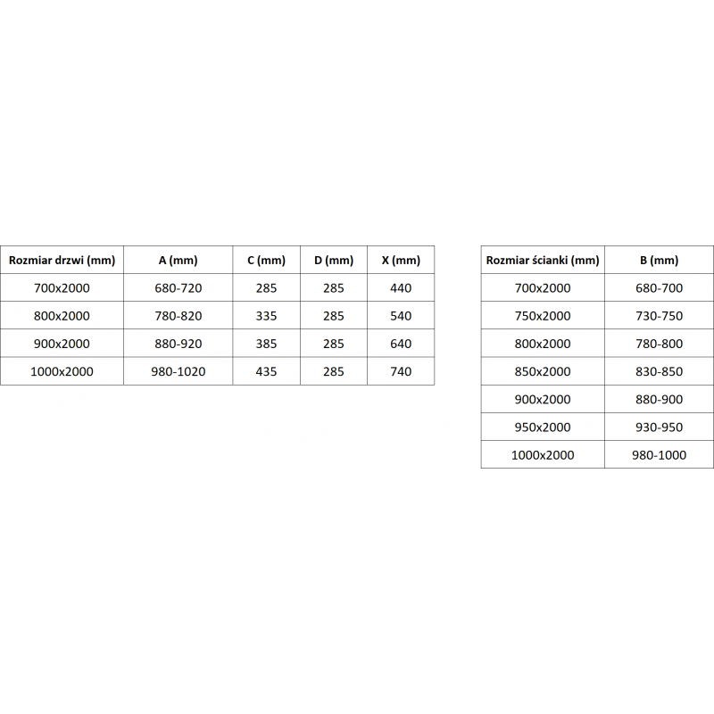 Rozměr: 100x85 cm (dveře 100 cm. stěna 85 cm)