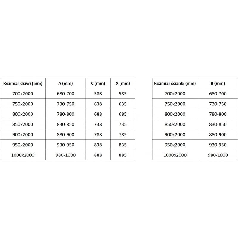 Rozměr: 70x75 cm (dveře 70 cm, stěna 75 cm)