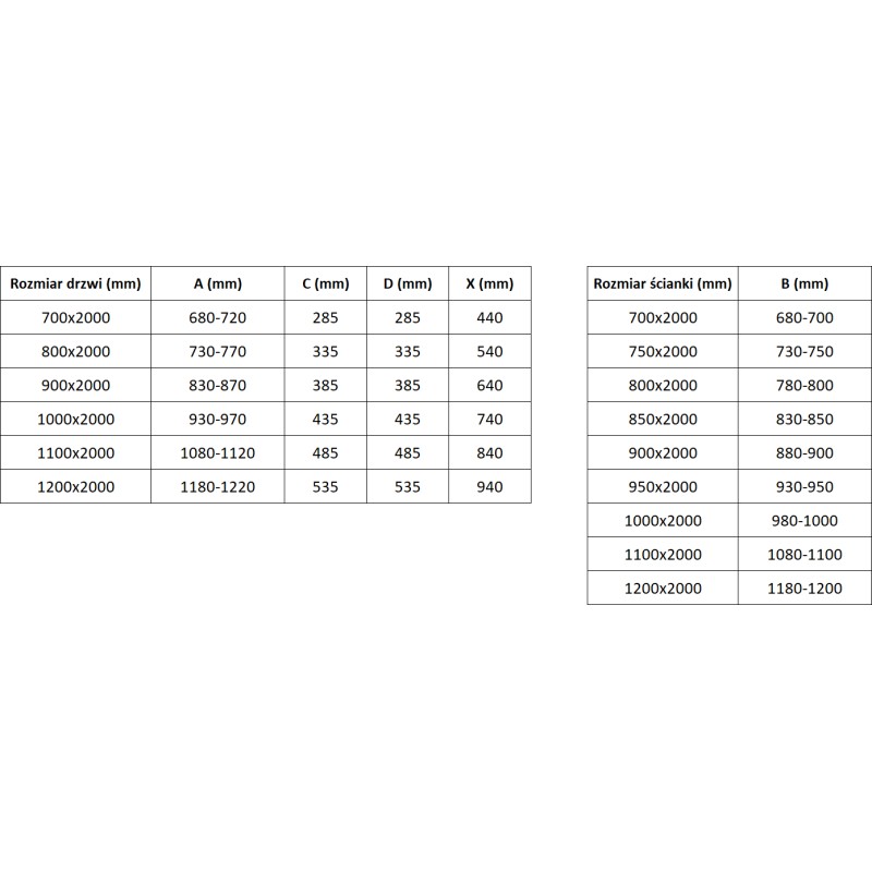 Rozměr: 70x85 cm (dveře 70 cm, stěna 85 cm)
