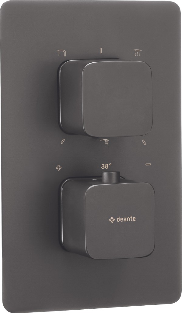 Vnější prvek termostatického BOXu v titanové povrchové úpravě je ztělesněním moderního designu a funkčnosti, kterou nabízejí skryté instalační systémy. Skrytá instalace umožňuje skrýt technické prvky armatur, jako jsou trubky a spojky, a ponechat viditelné pouze ty nejkrásnější prvky: precizně vyrobené designové detaily. Výsledkem je stylový a přehledný prostor, který potěší svou estetikou a usnadňuje každodenní údržbu. Termostatický BOX se prodává samostatně.