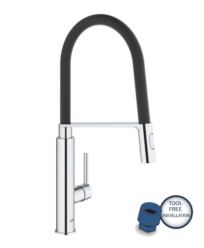 - s flexibilní hygienickou GROHFlexx kitchen hadicí z materiálu santoprene