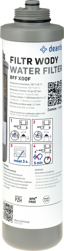 Náhradní filtr pro sadu pro filtraci vody (BFF_XZFP) by se měl vyměňovat každých šest měsíců nebo po přefiltrování 11 000 litrů vody. Produkt se snadno instaluje, což vám umožňuje rychle a pohodlně udržovat každý den filtrovanou vodu nejvyšší kvality a zároveň zajistit zdraví a pohodlí uživatelů.
