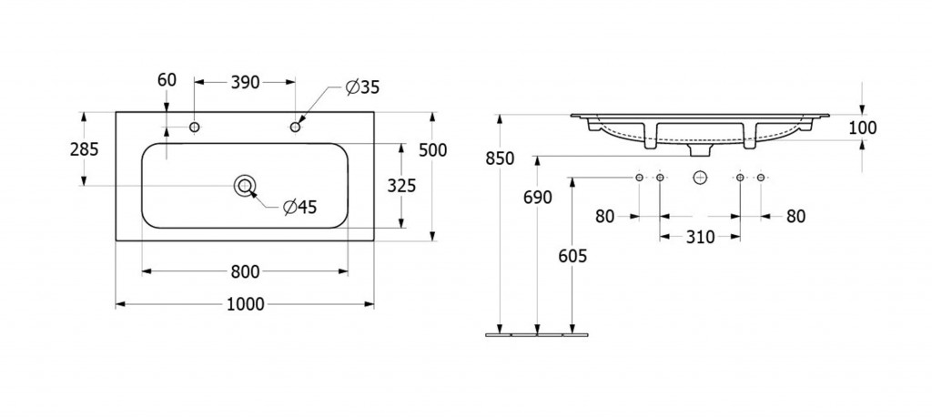 - vhodné na umyvadlovou desku nebo na skříňku