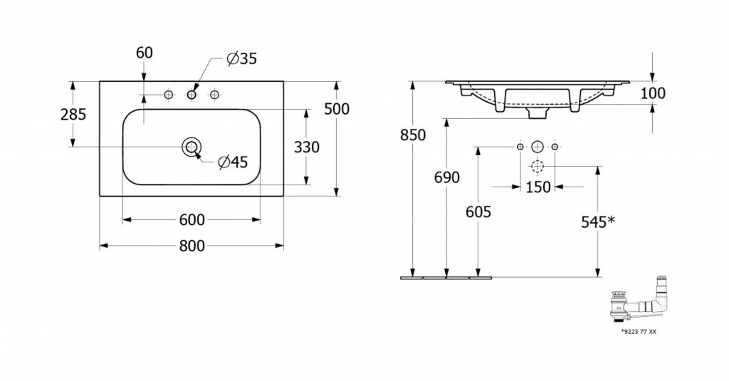 - instalace na umyvadlovou desku nebo na skříňku