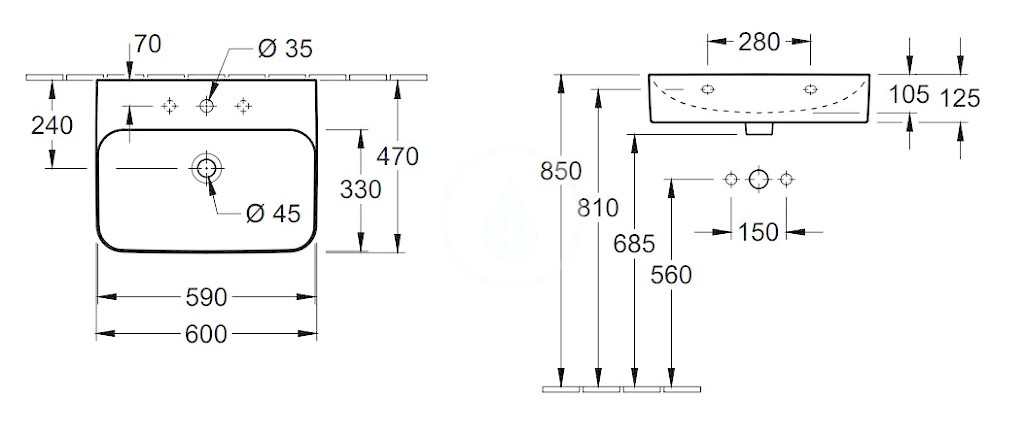 Vodovodní baterie není součástí balení, nutné objednat zvlášť.