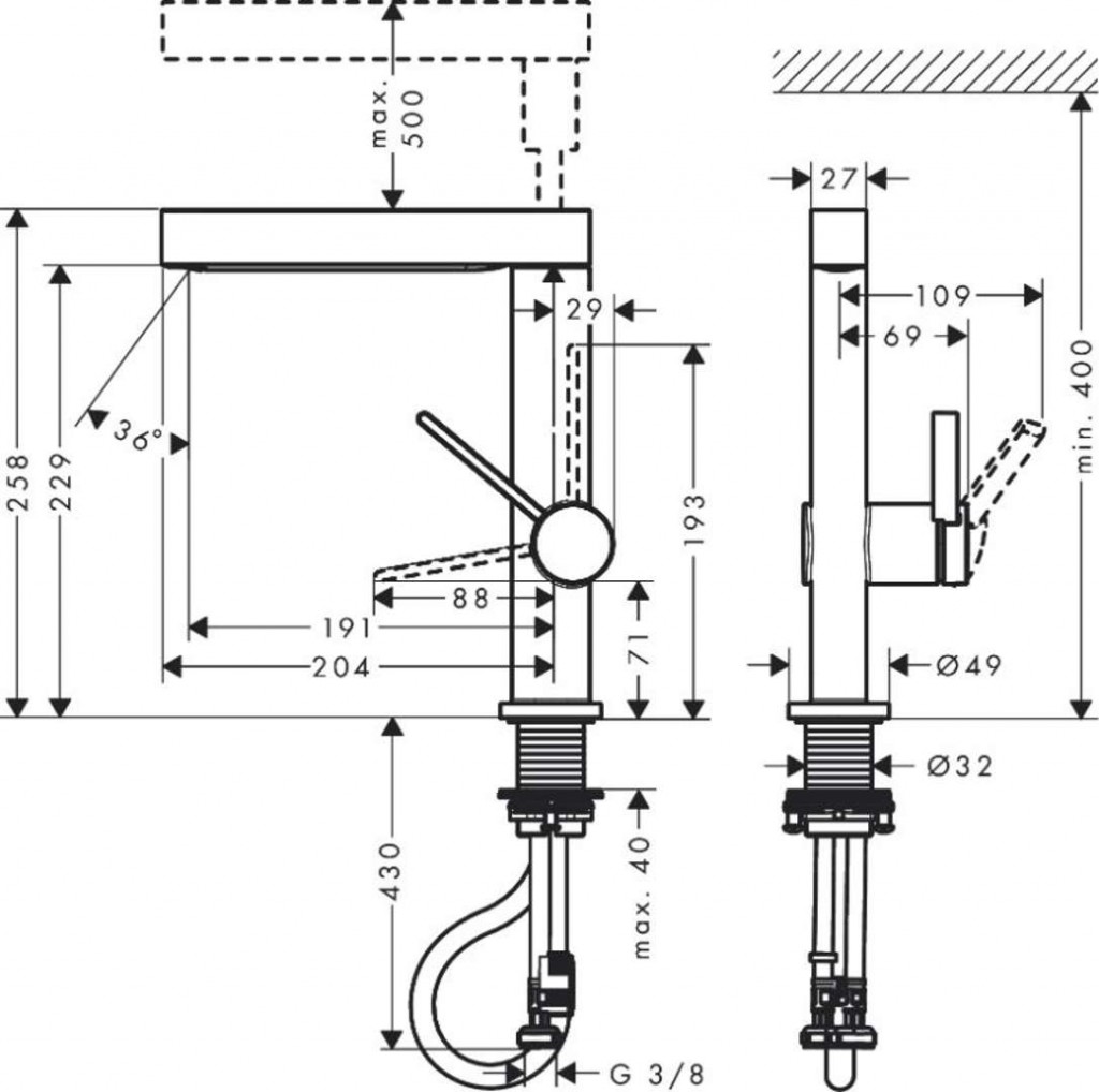 - výtokové rameno lze vytáhnout jako spršku až o 500 mm