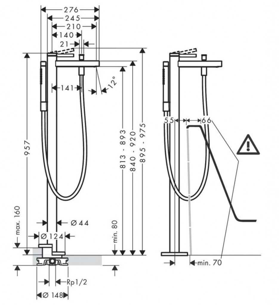 Vanová baterie Finoris na podlahu, bez tělesa