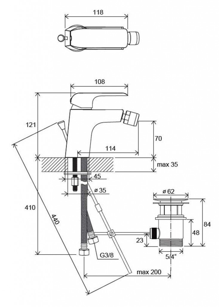 Bidetová stojánková baterie s výpustí
