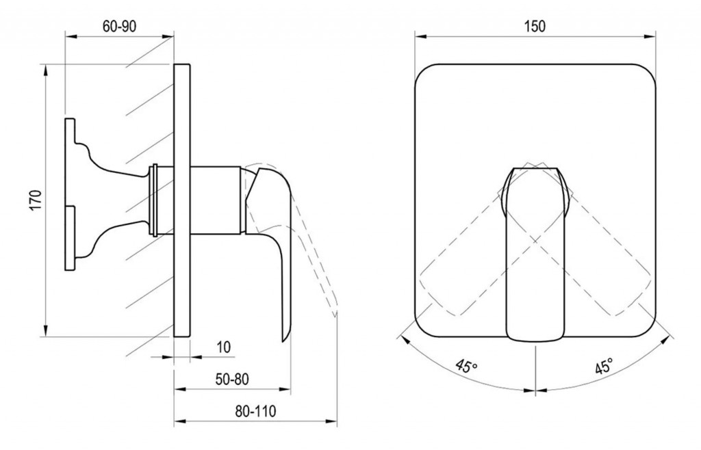 Podomítková baterie FL 066.20, bez podomítkového tělesa