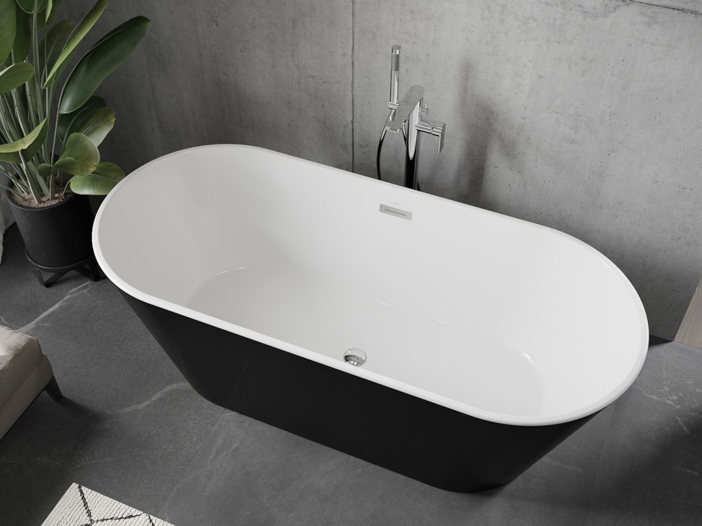 Volně stojící oválná akrylátová vana série FLAVIA od výrobce MEXEN s přepadem a umístěném odpadu na středu vany.