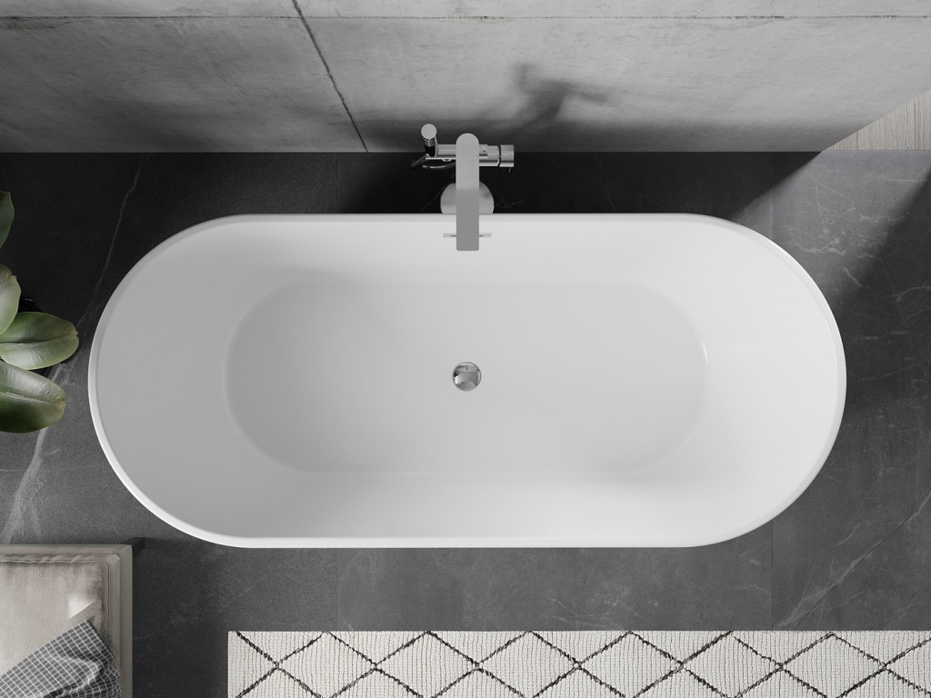 Volně stojící oválná vana FLAVIA je koupelnový prvek, který není připevněn ke stěnám nebo podlaze a stojí samostatně v prostoru koupelny. Je to často luxusní a designový prvek, který přináší do koupelny elegantní a moderní vzhled. Volně stojící vany jsou často spojovány s luxusními koupelnami a nabízejí jedinečný zážitek z koupání.