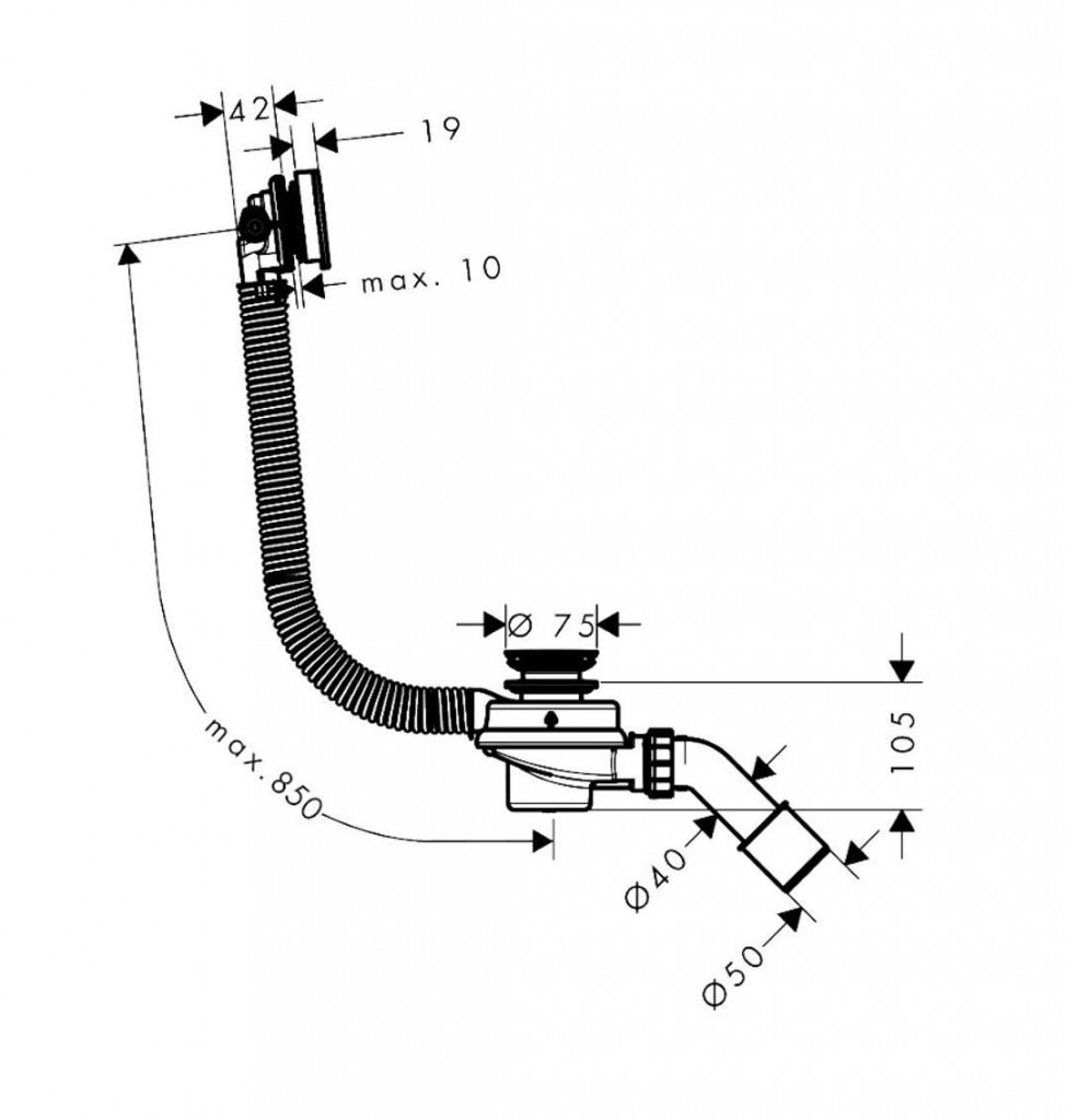 - zkracovatelná a ohebná přepadová hadice