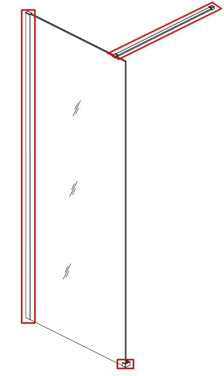 - Stabilizační výztuhu (délka 120 cm), kterou lze snadno zkrátit podle potřeby – spojuje sklo se stěnou a zajišťuje pevnost celé zástěny.