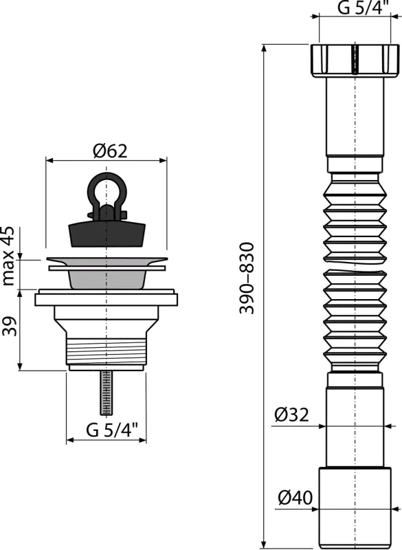 - Závit pro připojení k umyvadlovému sifonu 5/4"