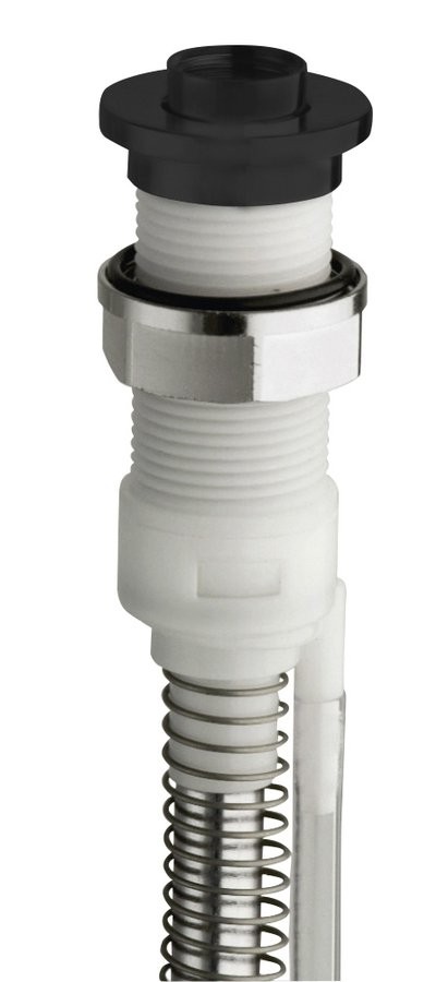 Systém výsuvu hadice pro montáž na hranu vany. Ruční sprcha se vratnou pružinou navrací zpět a zároveň je hadice osušena. Systém navíc pomocí drenáže zamezuje zatékání vody pod vanu.