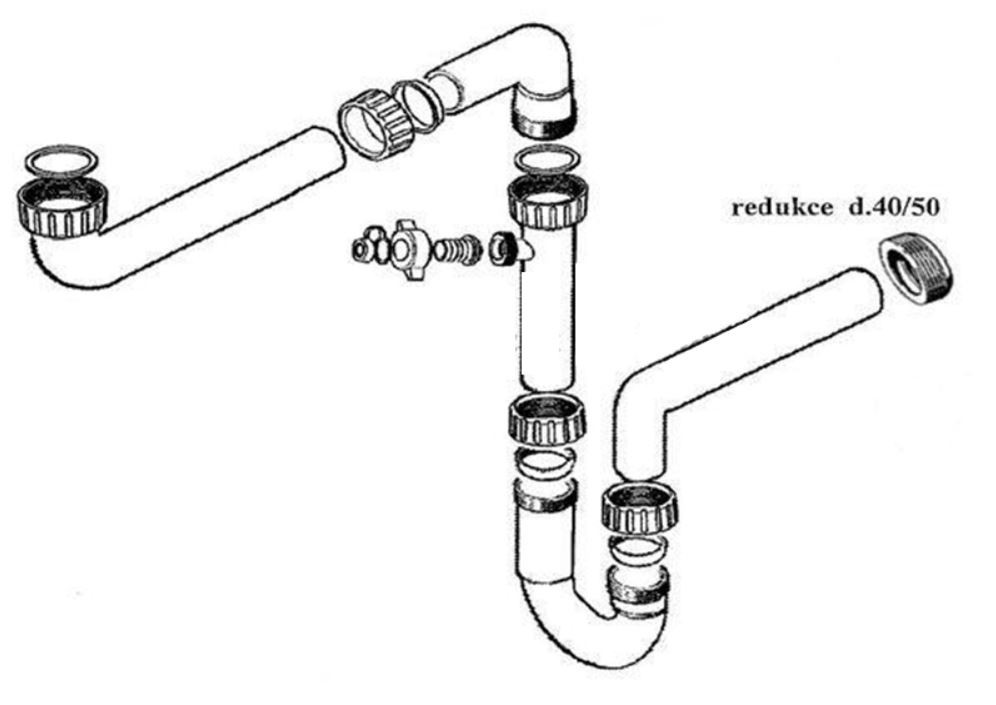 - Sifon pro úsporu místa včetně odbočky na myčku