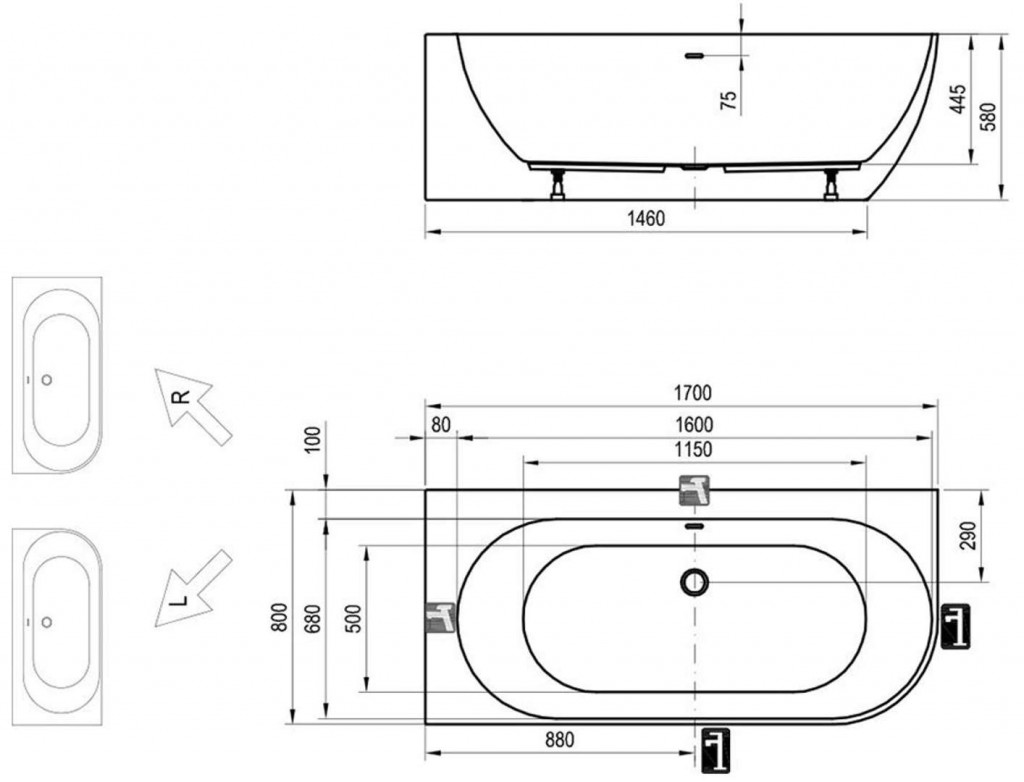 Vanový odtokový komplet (tj. přepad, pileta, sifon, zápachová uzávěra) a podpora (nožičky) jsou součástí balení.