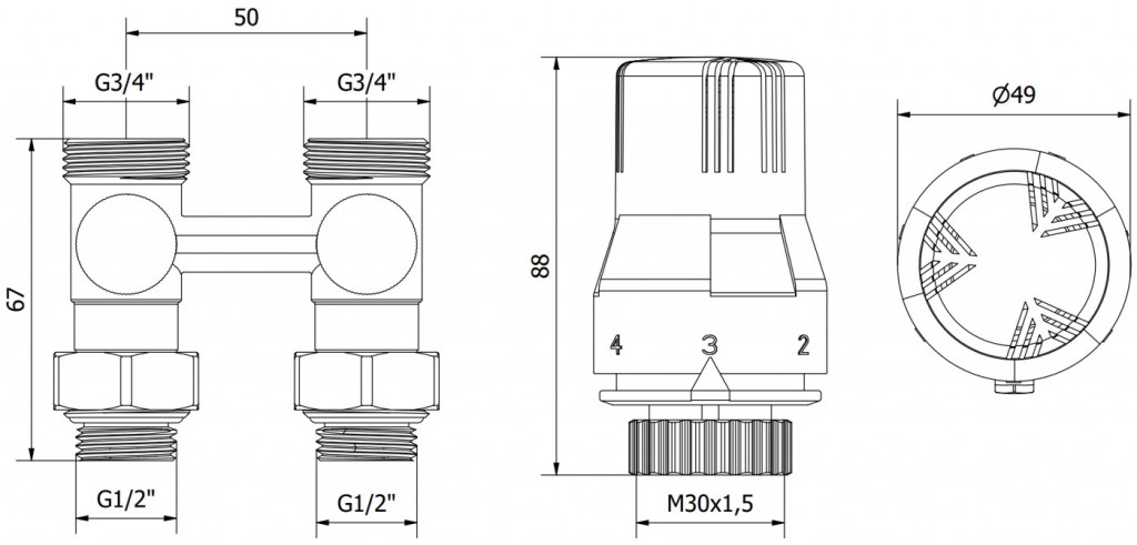 Průměr připojení ventilu: G 1/2" a G 3/4"