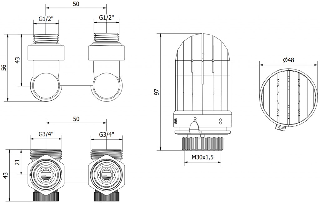Průměr připojení ventilu: G 1/2" a G 3/4"