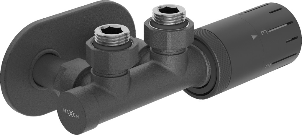 Termostatická úhlová souprava série G05 je určená pro připojení radiátorů. Součástí soupravy je: mosazný, úhlový ventil Uni-term pro radiátor s roztečí 50 mm, oboustranný, pro středové připojení s průměrem G1/2", krycí rozetka z nerezové oceli 115 x 65 x 7 mm s otvory pro připojení trubek vedoucích k radiátoru s mosaznými pouzdry, termostatická hlavice se stupnicí 0-5, hlavový závit M30 x 1,5 mm.