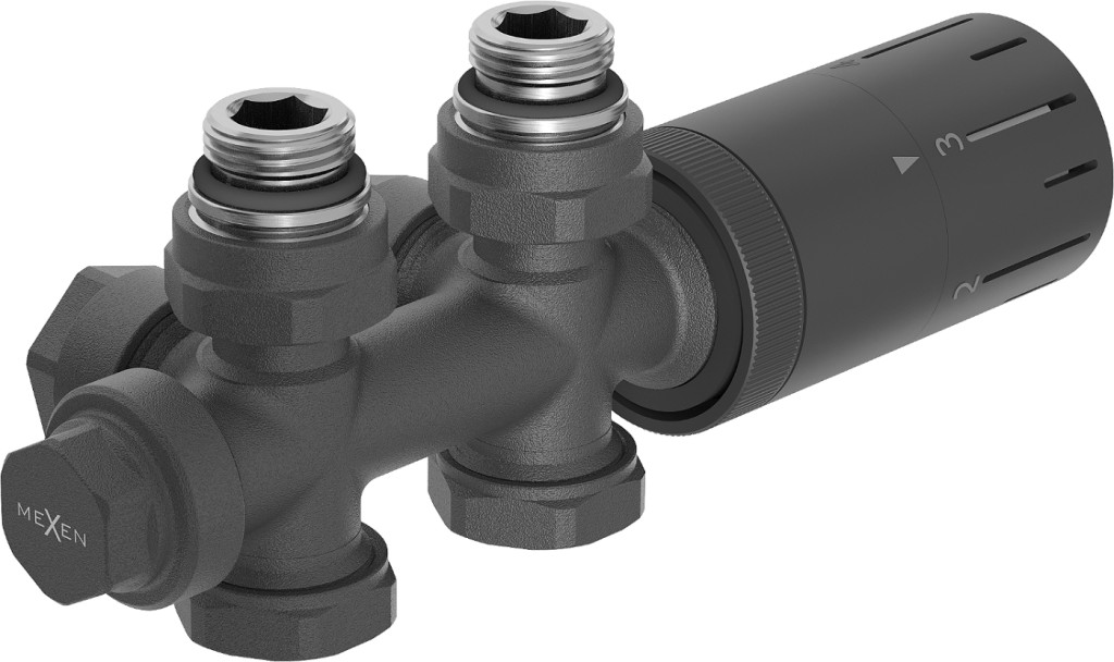 Termostatická souprava série G05 je určena pro připojení radiátorů. Součástí soupravy je: mosazný, úhlový/ rovný ventil Uni-term pro radiátor s roztečí 50 mm, oboustranný, pro středové připojení s průměrem G1/2", termostatická hlavice se stupnicí 0-5, hlavový závit M30 x 1,5 mm.