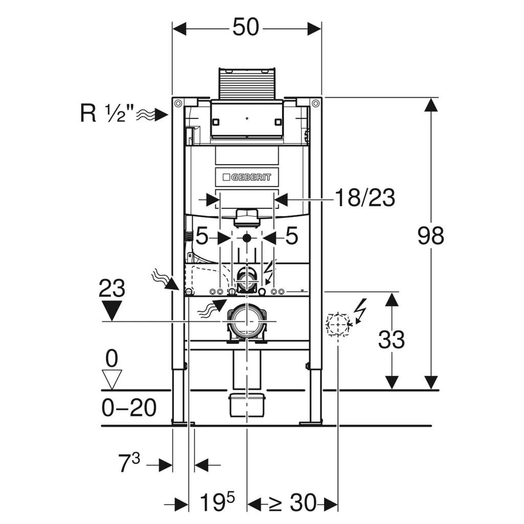 Geberit Duofix-horní, st.v.98cm, nádrž OMEGA12 pouze pro tlačítka OMEGA 111.030.00.1