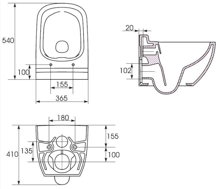 - rám pro nástěnné WC s připojovacími rozměry dle EN 33 a přesahem do 62 cm