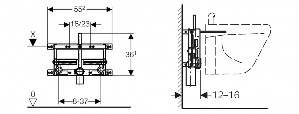 - Pro montáž bidetu se vzdáleností upevnění 18 cm nebo 23 cm