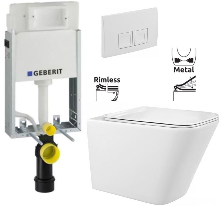 GEBERIT KOMBIFIXBasic vč. bílého tlačítka DELTA 50 + WC REA Raul Rimless + SEDÁTKO (110.100.00.1 50BI RA1)