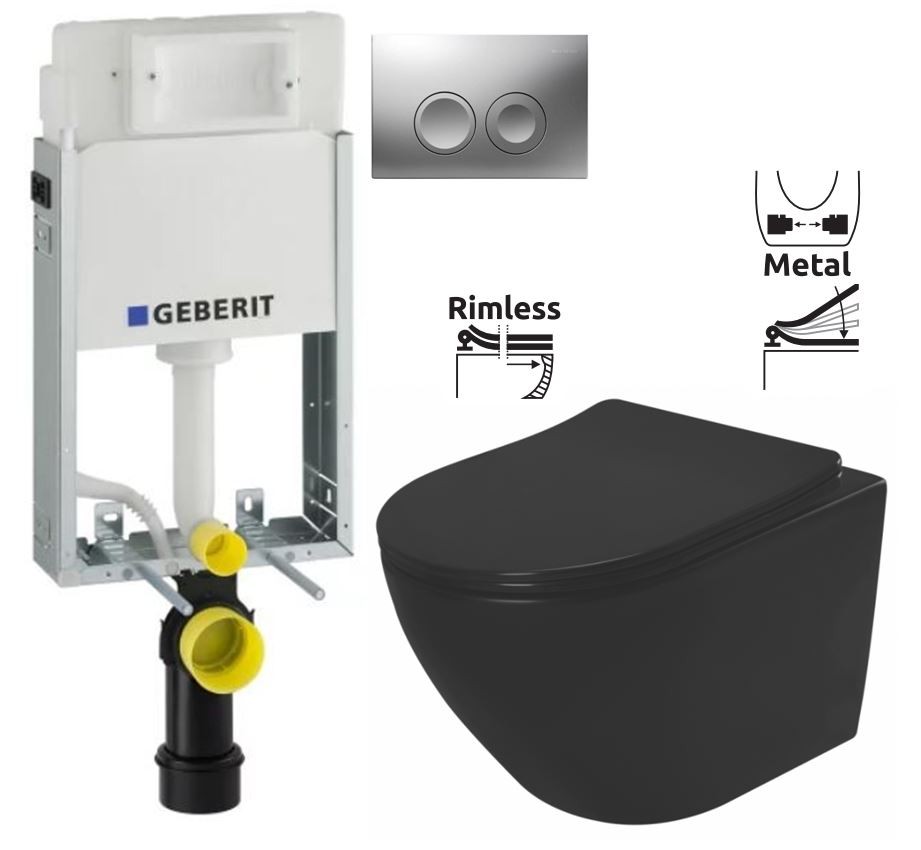 Závěsná WC mísa RIMLESS Carlo Mini Slim černá matná (REA-C8489)