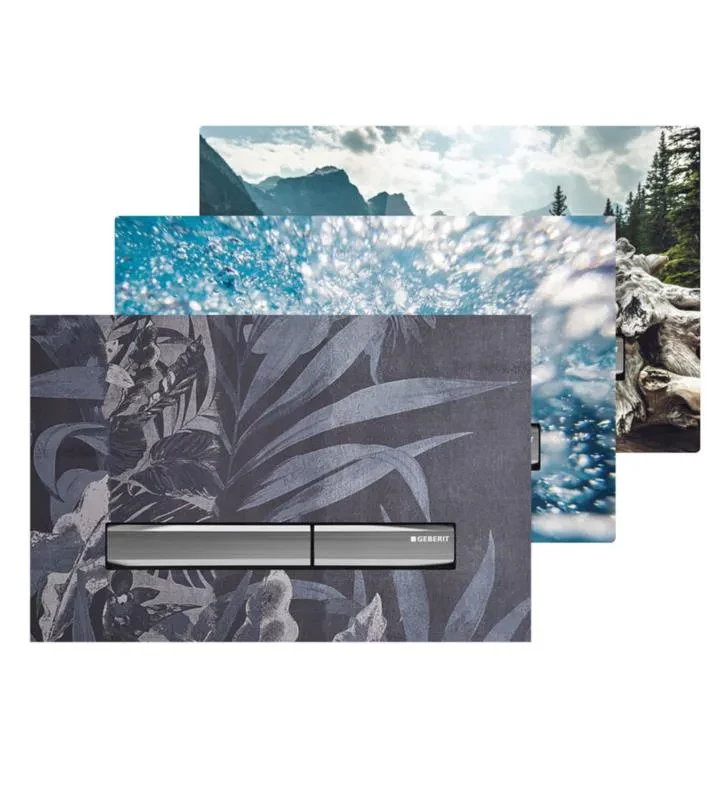 Při objednání tlačítka dostanete pouze rámeček a můžete popustit uzdu své fantazii. Dle svého vkusu navrhněte výplň tlačítka tak, aby co nejlépe korespondovalo s interiérem Vaší koupelny, jako výplň lze použít např. grafosklo, kůži, dekor či tapetu,... dle montážního manuálu musí být výplň tenká – cca 3mm.