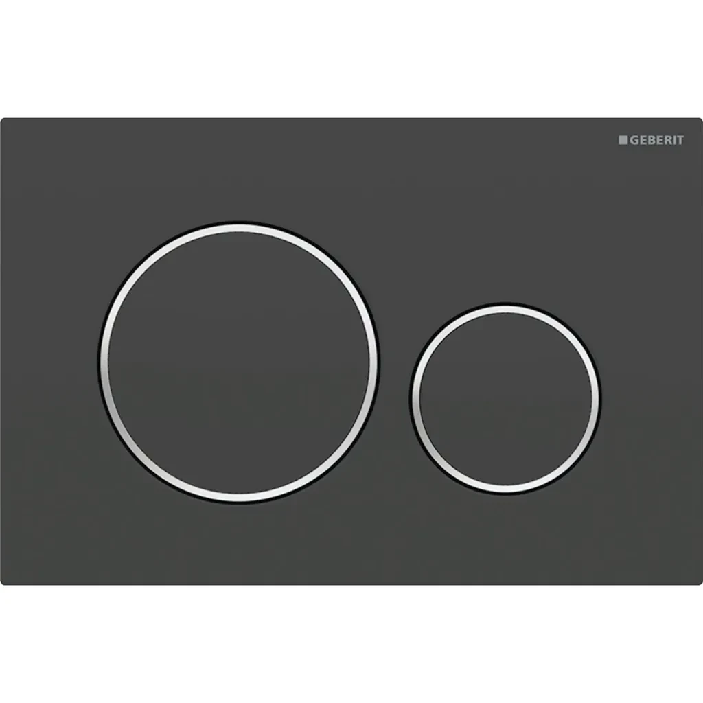 Geberit ovládací deska SIGMA20 černá matná, Designové kroužky: pochromovaná lesklá, talčítka černá matná, plastová 115.882.14.1