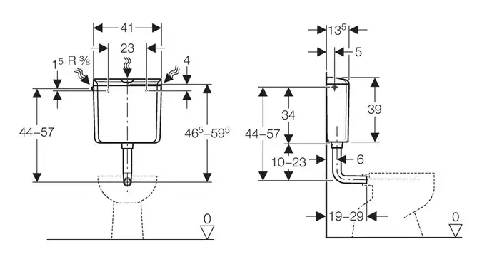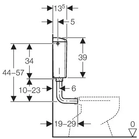 Geberit AP110 nízkopoložená splachovací nádržka na omítku 136.610.11.1 v provedení alpská bílá pro montáž na omítku. Pro použití v soukromém a částečně veřejném sektoru. Nádržka izolovaná proti orosování, nízká hlučnost, splachování Start/Stop s přívodem vody zleva, zprava a zezadu uprostřed. Splachovací množství s rozsahem nastavení 6/9L. Síla ovládání tlačítka pro splachování Start/Stop