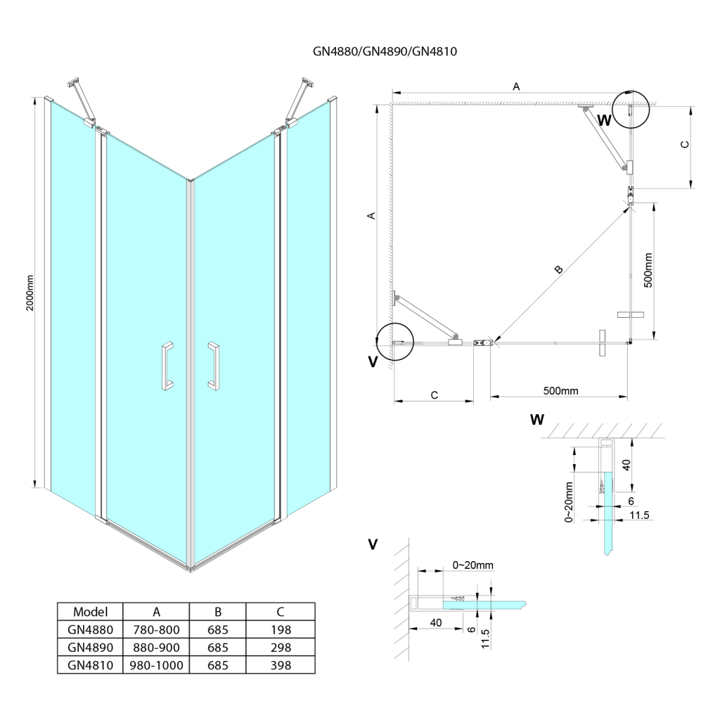 • Dveře skládací 700 - 900 mm umožňují složení ke stěně a úsporu místa v koupelně