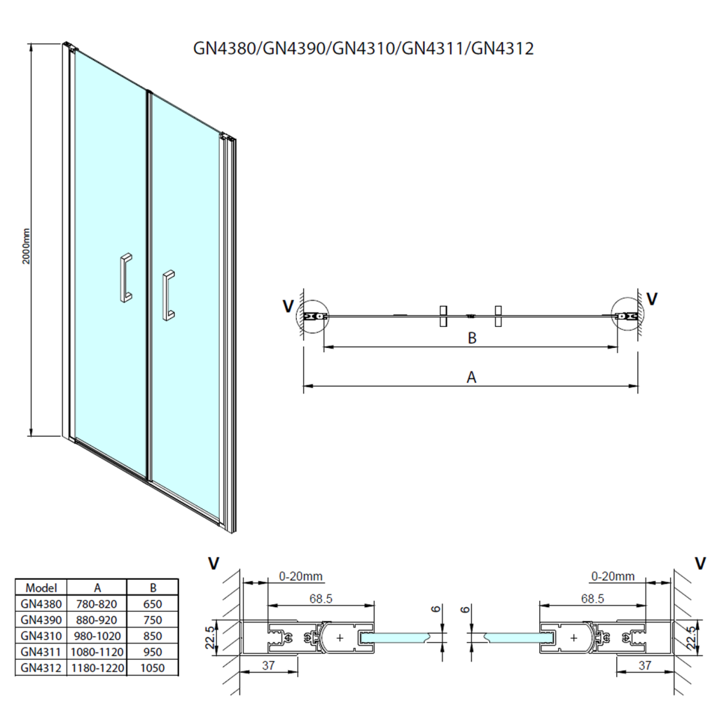 - Dveře je možno instalovat do niky nebo v kombinaci s boční stěnou
