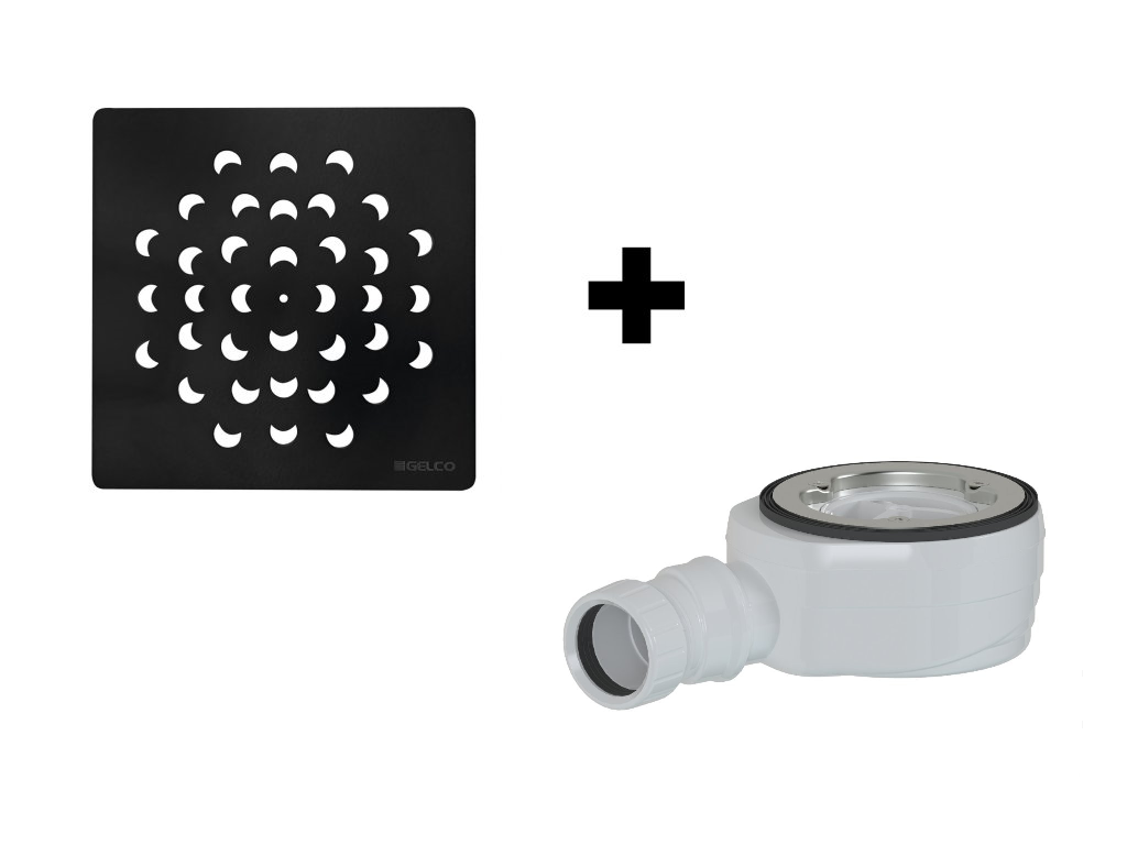 GELCO - SET - Čtvercová krytka sifonu černá KSM104B + sifon SN90 (KSM104B-SN90)