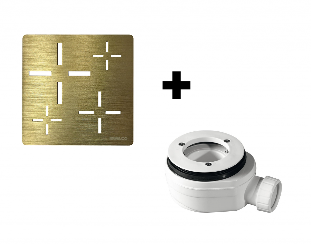 GELCO - SET - Čtvercová krytka sifonu zlatá KSM107G + sifon PB90EXN minus (KSM107G-SN90)