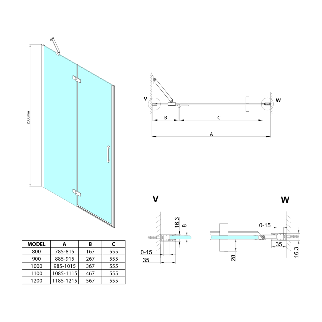 - Výška 2000 mm