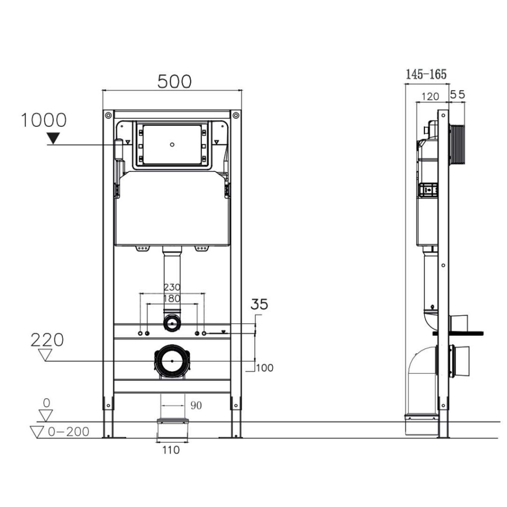 - Pro montáž před nosnou stěnu nebo do sádrokartonové konstrukce