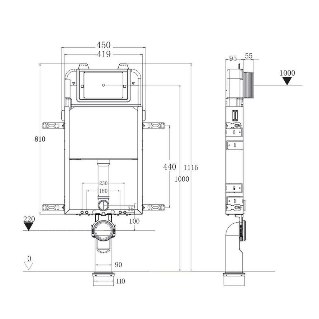- Pro montáž závěsného WC s připojovací roztečí 180 mm